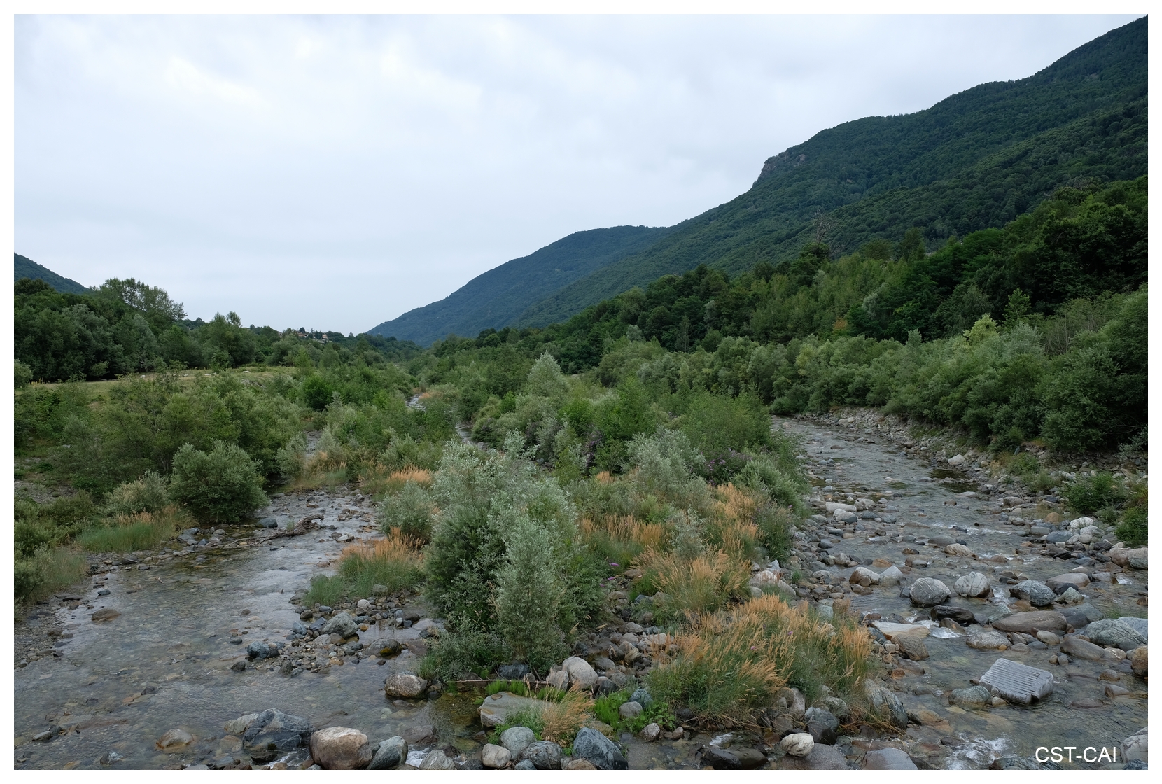 Da segnale che il percorso è in un'area S.I.C. Myricaria germanica (Sito di interesse comunitario) per la presenza della pianta Myricaria germanica a portamento cespuglioso legata ad ambienti fluviali.